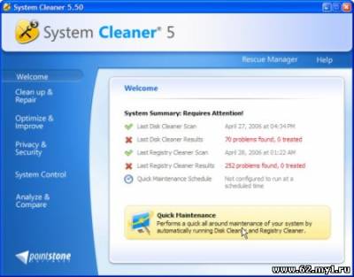 Программа для удаления с жесткого диска ненужных данных - временных и лог-файлов, кукисов и других файлов, находящихся в кэше браузера, и т.п. System Cleaner "понимает" более ста расширений, используемых для обозначения временных файлов, позволяя тем самым автоматизировать процесс очистки жесткого диска от накапаливающегося со временем хлама; с другой стороны, возможен поиск (и удаление) файлов с любыми другими расширениями. Кроме этого, программа допускает удаление неправильных записей из апплета "Установка и удаление программ". Немаловажно, что System Cleaner позволяет производить не просто удаление файлов, но их надежное удаление - без возможности последующего восстановления какими-либо утилитами.