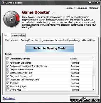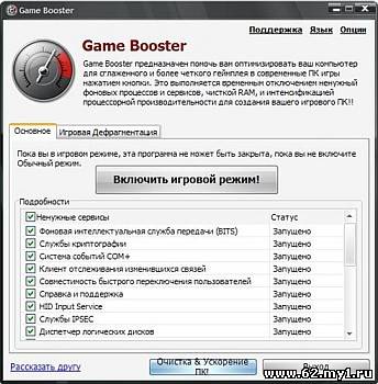 Утилита предназначена для настройки компьютера на максимальное быстродействие в играх, путем оптимизации многих параметров операционных систем Windows. Сочетание нескольких вариантов оптимизации (дефрагментация оперативной памяти и жесткого диска, диагностика конфигурации DirectX и др.) помогает полностью раскрыть потенциал вашего компьютера. В арсенале любого опытного геймера можно обнаружить огромное количество утилит, которые позволяют повысить производительность игрового ПК.