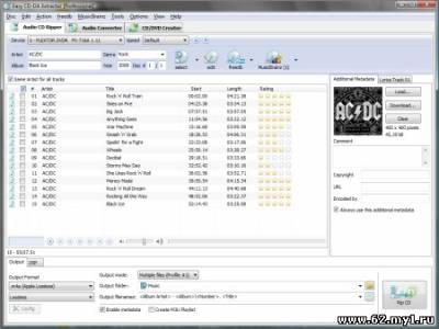 Один из лучших аудио рипперов. Программа копирует аудио треки с аудио-CD на жесткий диск конвертируя в 3G2, 3GP, MP1, MP2, MP3, Windows Media Audio, Ogg Vorbis, MP4, M4A, AAC, aacPlus v1 (HE-AAC, AAC+), aacPlus v2 (HE-AAC v2, HE-AAC+PS, eAAC+), FLAC, Musepack, WavPack, WAV, AIFF, Monkey's Audio, Shorten, CUE and M3U. Also, the Nero Digital (Nero AAC). В программе встроен плеер с поддержкой ID3 и ID3V2 тегов. Так же можно конвертировать поддерживаемые форматы между собой. В программе присутствует ряд фильтров для повышения качества звучания. В программе доступно 30 языков.