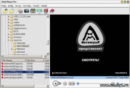Программа предназначена для просмотра swf-файлов (flash-роликов). Полоса прокрутки в виде синей полоски, поддержка Win-тем, асоциация swf-файлов с программой, stop-play по нажатии на выбранную кнопку в настройках, дружественный интерфейс. C Flash Player Pro вы можете: Загрузить flash ролики из сети Интернет, Смотреть и проигрывать ролики Macromedia flash во весь экран с помощью встроенного плеера. Быстро создавать флэш хранители экрана. Создавать установочные файлы для вашего хранителя экран. Преобразовывать (конвертировать) SWF в EXE файл, и обратно.