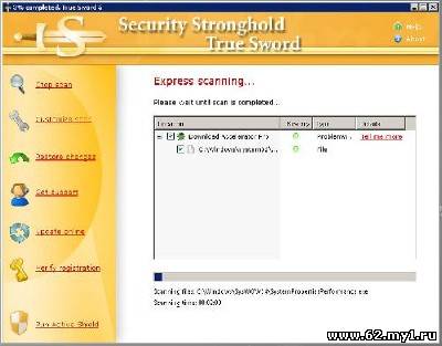 True Sword - программа для сканирования компьютера на наличие шпионского и рекламного ПО, трэкеров, вредоносных "звонилок", клавиатурных шпионов, троянов, руткитов, вредоносных cookie-файлов и программ-взломщиков персональных данных. True Sword проверяет логические диски, системный реестр, процессы и удаляет найденные подозрительные объекты.