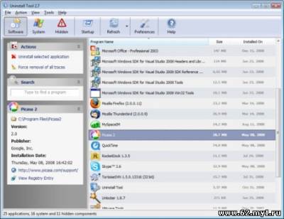 Удобная программа, заменяющая неудобную и тяжеловестную стандартную программу установки и удаления программ Windows. Имеет множество опций, настроек и возможностей, которых нет в стандартном аналоге от Microsoft: высокая скорость работы и малый размер; показ установленных скрытых и системных программ; удобная навигация и поиск; удаление программ, деинсталляция которых (стандартными средствами) невозможна.
