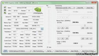 Программа для видеокарт NVIDIA, обладающая целым рядом полезных возможностей: получение краткой информации о характеристиках видеокарты на базе NVIDIA; мониторинг частот, напряжения GPU?, температуры и работы системы охлаждения, с возможностью журналирования; независимый разгон для каждого уровня производительности; изменение напряжения питания GPU?; задание фиксированной скорости вращения вентилятора на карте; редактор профилей драйвера NVIDIA версий 256.ХХ и новее.