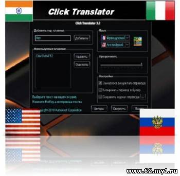 Click Translator - обеспечит мгновенный перевод выделенного текста. Переводите текст при помощи мыши и нажатия горячей клавиши! Все, что Вам нужно сделать - это выделить текст и нажатием горячей клавиши получить перевод во всплывающем сообщении. Вы можете настроить горячие клавиши, сохранить перевод в текстовый файл и скопировать его в буфер обмена.