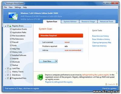 Представляем пятую версию программы BoostSpeed. Программа включает в себя более 18 утилит для оптимизации производительности компьютера. Auslogics BoostSpeed очистит Ваш компьютер от системного "мусора", исправит ошибки реестра, дефрагментирует диски и поможет настроить Windows. С помощью новой утилиты File Recovery, Вы сможете восстанавливать случайно удаленные файлы, а также файлы удаленные вирусами и вредоносным ПО. Благодаря утилите Track Eraser никто не узнает, какие сайты Вы просматривали, какие файлы открывали и какие приложения запускали. С помощью утилит Disk Doctor и Disk Explorer Вы сможете проверять винчестер на наличие ошибок и контролировать использование дискового пространства.