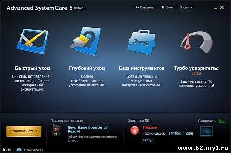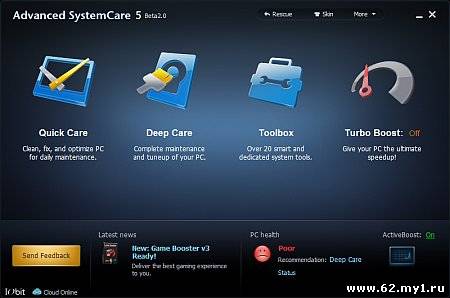 Программа, включающая в себя множество модулей для оптимизации, настройки и повышения производительности компьютеров, находящихся под управлением операционными системами Windows. Благодаря возможностям Advanced SystemCare вы сможете очистить ПК от шпионского и рекламного ПО, обнаружить и заранее устранить возможные угрозы и бреши в системе безопасности ОС, исправить ошибки в системном реестре, очистить временные и ненужные файлы, управлять списками автозагрузок, оптимизировать работу систем.