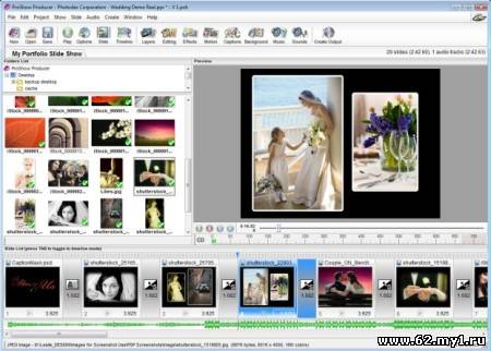 Cтаршая в семействе популярных программ для создания слайд-шоу и презентаций из ваших фотографий и видеоклипов фирмы Photodex. Proshow Producer отличается от распространенной версии Proshow Gold существенно более широкими возможностями. Форматы вывода крайне разнообразны и удовлетворят даже самых требовательных пользователей. С помощью данной программы можно создать слайдшоу, презентации и скринсейверы на основе Ваших фотографий. Дополнительные возможности программы позволяют использовать её при видеомонтаже. Огромное количество эффектов, которые можно использовать в создании слайд-шоу, помогут добиться именно того результата, который вы пожелаете. При создании можно использовать и редактировать любое музыкальное сопровождение.