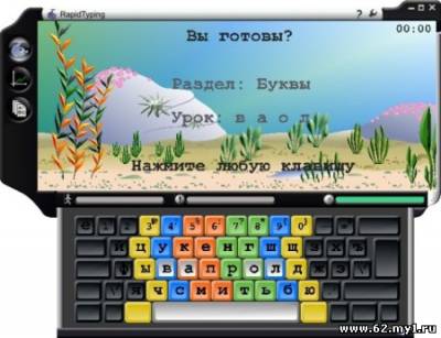 Программа поможет научиться быстро и без ошибок печатать на клавиатуре. Возможности программы: -Игровой сюжет; Обучение будет проходить на фоне красочного подводного мира. Разнообразные подводные обитатели не дадут вам заскучать во время прохождения урока. С повышением качества вашего набора, перед вами будут открываться новые мира с их симпатичныим обитателями. Простой, красочный интерфейс; Поддерживается библиотека красочных скинов. Статистика обучения; Статистика ваших уроков отображается как в табличной форме, так и в виде диаграмм. Статистика ведется по скорости набора, количеству ошибок. Эмуляция клавиатуры; Эмулятор клавиатуры поможет вам быстрее отвыкнуть смотреть на клавиатуру.