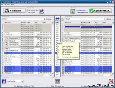 Отличный инструмент для сравнения и синхронизации папок. FreeFileSync используется для быстрой и легкой настройки операций синхронизации между двумя папками. Лёгкий и приятный интерфейс, щирокие возможности по настройке операций копирования. Поддерживает побайтовое сравнение и сравнение по дате сохдания файлов и папок.