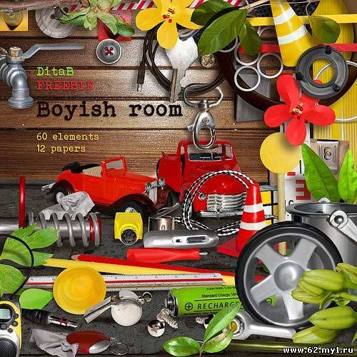 Яркий детский скрап-комплект для мальчишек - Мальчишеская комната 60 png | 12 jpg | 3600xp3600px | 183,22 Mb