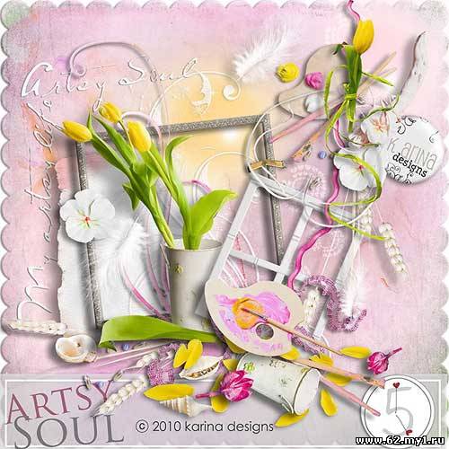 Романтический скрап-комплект - Художественная душа 49 png | 5 jpg | 3600xp3600px | 16,14 Mb