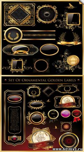Золотые этикетки с орнаментом в векторе EPS + JPG | 2500 x 2500 px | 23 мб
