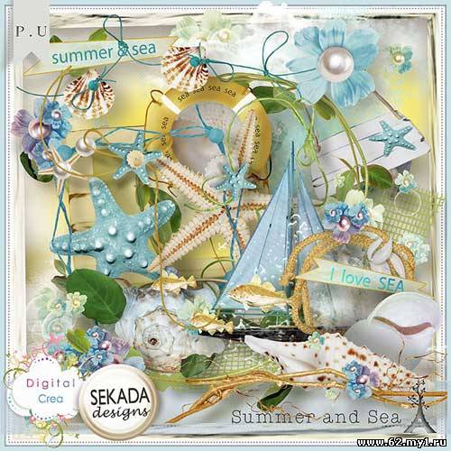 Морской скрап-комплект - Лето и море 30 png | 6 jpg | 3600xp3600px | 31 Mb
