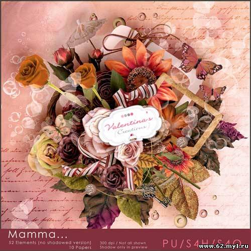 Романтический скрап-комплект - Мама 52 png | 10 jpg | 3600xp3600px | 36,6 Mb