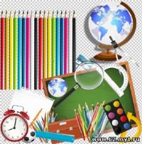 Клипарт PSD - школьные предметы цветные карандаши краски с глобус на прозрачном фоне PSD, слои раздельно | max 5651 x 5739 | 300 dpi | 64 MB