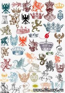 Клипарт PSD - Геральдические животные и короны для фотошоп на прозрачном фоне PSD, слои раздельно | количество 48 | max 6623 x 9391 | 300 dpi Размер: 52.55 MB