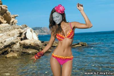 Шаблон psd женский - Брюнетка в купальнике с рюшами PSD | 2000x1335 | 300 dpi | 18 мб Автор: Alexey84