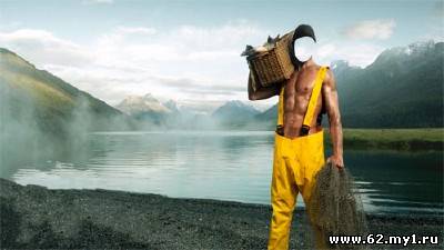 Шаблон для фотошопа - Рыбак с уловом PSD | 2500x1400 | 300 dpi | 24 мб Автор: Alexey84