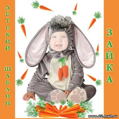 Шаблон для фотомонтажа - Милый зайчонок PSD | 2000x1500 | 300 dpi | 14,5 мб Автор: Alexey84