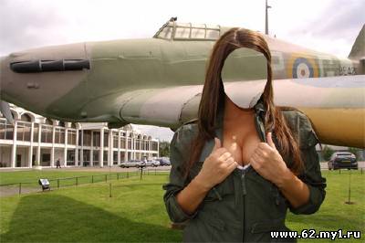 Шаблон женский - Красивая летчица в форме у самолета PSD | 2400x1600 | 300 dpi | 27 мб Автор: Alexey84