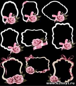 Рамки вырезы с розами бантом и ленточками на прозрачном фоне PSD, слои раздельно | max 5000 x 5605 | 72 dpi | 58.93 MB