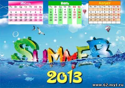 Календарь - Лето 2013 PSD | 2000x1400 | 300 dpi | 10 мб Автор: Alexey84