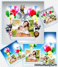 Детские фотошоп рамки с зверями и шариками PSD | 1 шт | 4281x4420 | 300 dpi | Слои раздельно | 112,37 Мб Автор сборки: soch