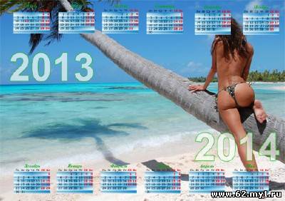 Календарь на 2013 и 2014 год - Девушка на пляже PSD | 3500x2500 | 300 dpi | 45 мб Автор: Alexey84