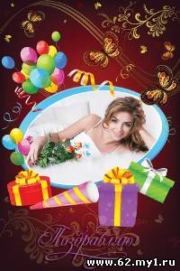 Поздравительная фотошоп рамка с бабочками и подарками PSD | 1 шт | 2551x3819 | 300 dpi | Слои раздельно | 54.57 MB Автор: soch