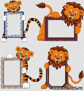 Клипарт - Рамки вырезы с львёнком прозрачный фон В PSD формате можно сменить рамку на любую свою 4PNG + PSD слои раздельно | max 6848 x 4841 | 500 dpi | 171,01 Мб