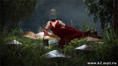 Шаблон для девушек - На сказочной поляне в красном красивом платье PSD | 2000x1125 | 300 dpi | 19 мб Автор: Alexey84