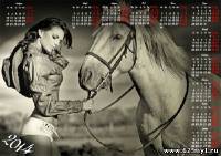 Красивый календарь - Черно-белый постер девушка и лошадь PSD | 3000x2120 | 300 dpi | 35 мб Автор: Alexey84