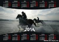 Календарь на 2014 год - 2 наездника на закате PSD | 3000x2120 | 300 dpi | 25 мб Автор: Alexey84