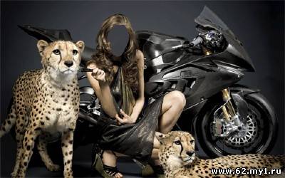 Шаблон для девушек - Фотосессия с дикими гепардами на фоне мотоцикла PSD | 2000x1250 | 300 dpi | 17 мб Автор: Alexey84
