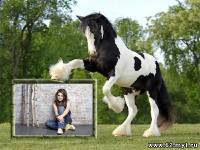 Рамка для фотомонтажа - Шикарная бело-черная лошадь и ваше фото PSD | 2000x1500 | 300 dpi | 20 мб Автор: Alexey84