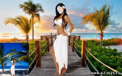 Шаблон для фотомонтажа - Стройная брюнетка на Гавайях PSD | 2000x1250 | 300 dpi | 24 мб Автор: Alexey84