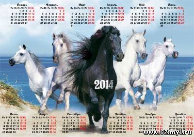 Календарь на 2014 год - Пять бегущих коней PSD | 3000x2120 | 300 dpi | 28 мб Автор: Alexey84