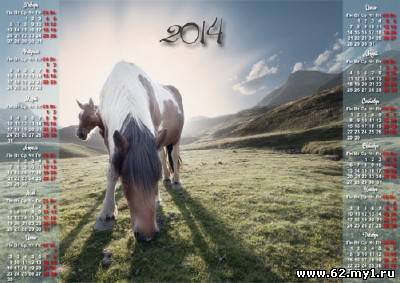 Календарь 2014 - Лошади пасутся на лужайке PSD | 3000x2120 | 300 dpi | 30 мб Автор: Alexey84