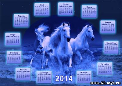 Календарь на 2014 год - Лошадки и восхитительная синяя ночь PSD | 2500x1765 | 300 dpi | 16,5 мб Автор: Alexey84