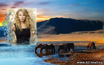 Фоторамка - Лошади пасутся у водоема PSD | 2000x1250 | 300 dpi | 20 мб Автор: Alexey84