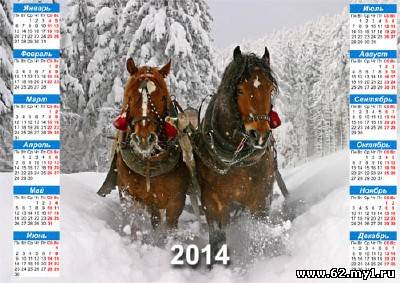 Календарь на 2014 год - Две лошади зимой мчатся по лесу PSD | 3000x2120 | 300 dpi | 32 мб Автор: Alexey84
