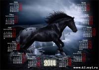 Календарь 2014 - Пара бегущих лошадей PSD | 3000x2120 | 300 dpi | 30 мб Автор: Alexey84