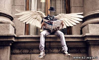 Шаблон мужской - Ангел с газетой в руках PSD | 2000x1230 | 300 dpi | 21 мб Автор: Alexey84