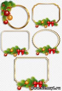Клипарт - Новогодние рамки вырезы украшенные еловыми веточками и игрушками на прозрачном фоне PSD 1 | слои раздельно | 5208 x 5208 | 300 dpi | 64.09 MB