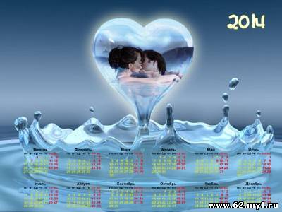 Рамка для фотомонтажа + календарь - Сердце из капли PSD | 2000x1500 | 300 dpi | 17 мб Автор: Alexey84