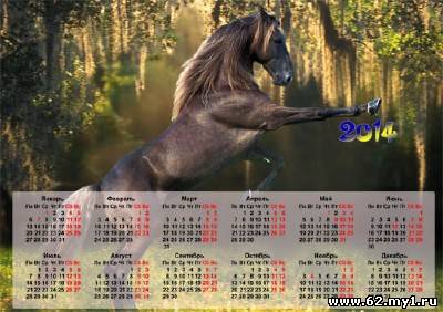 Красивый календарь на 2014 год - Игривая лошадка PSD | 3500x2480 | 300 dpi | 37 мб Автор: Alexey84
