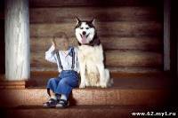 Шаблон для мальчиков - Малыш с голубоглазой хаской PSD | 2000x1335 | 300 dpi | 18 мб Автор: Alexey84