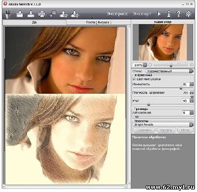AKVIS Sketch - обновлённая версия программа, которая превращает фотографии в рисунки, сделанные карандашом или углем. Sketch позволяет создать черно-белый и цветной карандашный рисунок и даже получить эффект акварели и пастели. В этой версии присутствует пакетная обработка файлов standalone (ранее была доступна только в версии plugin в виде action Photoshop), добавлена поддержка файлов формата RAW (CRW, CR2, NEF, ARW, RW2, PEF и др.), добавлена возможность использования системного диалога открытия/сохранения файлов, исправлены найденные ошибки. Понятный, интуитивный интерфейс, быстрый подбор параметров с помощью окна "превью", возможность переключаться одним кликом мыши между исходной фотографией и полученной картинкой, подсказки в нижней правой части окна помогут вам добиться желаемого эффекта. Есть возможность сохранять настройки и использовать заготовки (пресеты), что упрощает дальнейшую работу с программой.