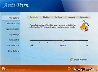 Anti-Porn - мощная программа для блокировки просмотра нежелательных сайтов. Деинсталировать или деактивировать можно только зная пароль. Программа хорошо себя зарекомендовала, подходит для руководителей и отцов семейств, ибо это - оптимальное решение для поднятия производительности сотрудников, а родители не будут беспокоится что их чадо проводит в интернете время за просмотром. Особенности: — Блокирование порно сайтов — Anti-Porn блокирует тысячи порно сайтов и слов. Вы также могжете заранее определить точность фильтрации — Ограничение интернет — чатов — Anti-Porn может ограничить доступ к популярным чатам и веб-камер. — Ограничение доступа в Интернет по времени — Полный лог компьютерной истории — Запись данных о трафике для обзора использования Интернета — Вы можете провести инвентаризацию компьютером для детей, и найти все фотографии, фильмы, музыкальные файлы и веб-страницы. []  [/] Размер: 3,49 Мб Информация на восстановление: +1% Язык Интерфейса: Английский Лекарство: в архиве Платформа: Windows 2000/2003/XP/Vista/ 7 Cкачать Anti-Porn 17.6.3.6: