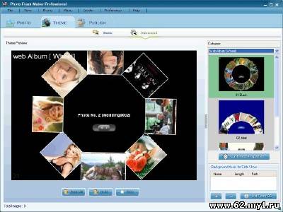 AnvSoft Photo Flash Maker Platinum - программа для создания анимированных слайдшоу с сопровождением из вашей любимой музыки. Программа поможет оживить фотографии, добавить к ним анимацию наподобие падающего снега и сделать рамки, если вы этого пожелаете. В результате вы получите файл формата флеш-анимации SWF, который можно просмотреть в браузере или загрузить в Интернет, чтобы поделиться им с друзьями. Программа имеет большое количество настроек и опций, однако снабжена интуитивно понятными мастерами, делающими ее освоение предельно простым. Особенности: • Прибавляет фото и музыку Фото Flash Maker поддерживает JPG, TIFF, BMP и PNG файлы. Вы также сможете добавить фоновую музыку в формате MP3, WMA и WAV файлов либо конкретно вырезать и вставлять акустические треки с компакт-диска. • Выбор шаблонов Flash Есть 10-ки готовых к использованию шаблонов Flash на выбор. Каждый шаблон может быть настроен так, что вы сможете просто создать конкретно то, что вы желаете. • Экспорт Flash слайд-шоу Фото слайд-шоу могут быть экспортированы в качестве самостоятельных SWF файлов либо XML-Driven Flash слайд-шоу. Программа также может записывать Flash слайд-шоу на CD/DVD. Доп способности Platinum: • Поддержка FLV видео файлов • Возможность творения видео слайдшоу из SWF файлов, HTML и XML документов
